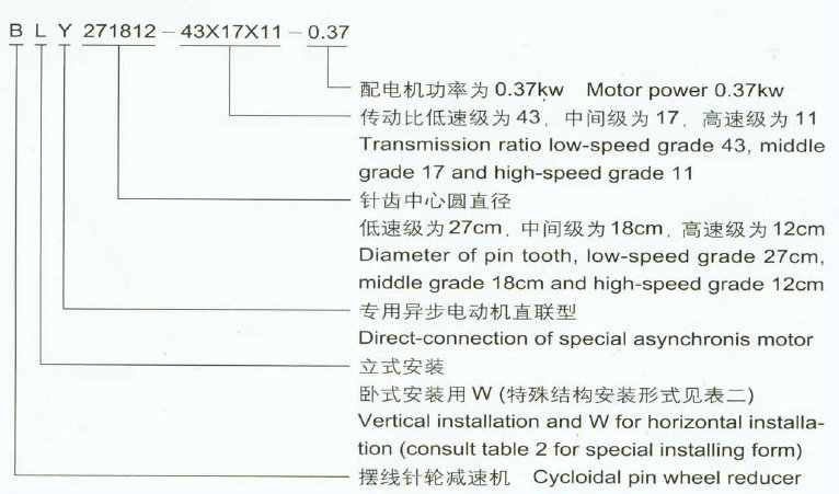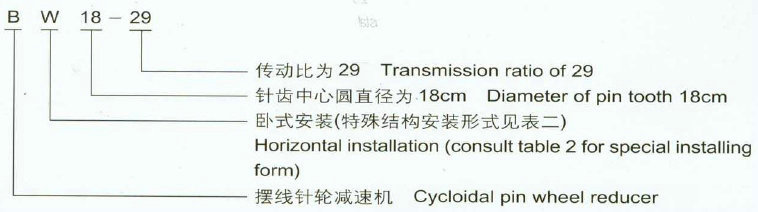 2.擺線針輪減速機型號: