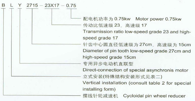 BLY擺線針輪減速機為法蘭式、專用異步電動機直聯(lián)型、立式安裝;